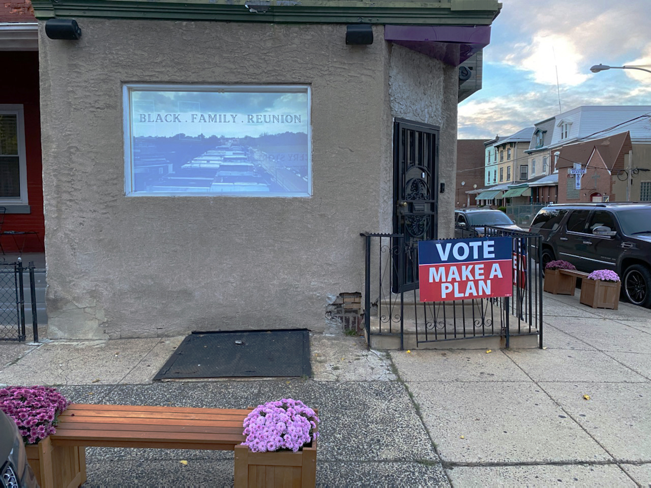 Filmmaker and photographer Marie Alarcon made a new online work responding to “Black Family Reunion” by Dietrich Adonis and Jane Golden (1988)/Ernel Martinez (Restored 2008) at 4020 Parkside Ave. The work was screened in October 2020 at Mamie & Weaver’s Ultra at the intersection of Ogden and Holly street* in the Belmont neighborhood. Black Family Reunion is a short documentary about longevity and the right to return in the West Philadelphia neighborhoods historically known as the Bottom. Current and former residents from the Top of the Bottom to the Black Bottom discuss displacement, shifting community dynamics, and nostalgia, as well as the desire to escape and the desire to reclaim.